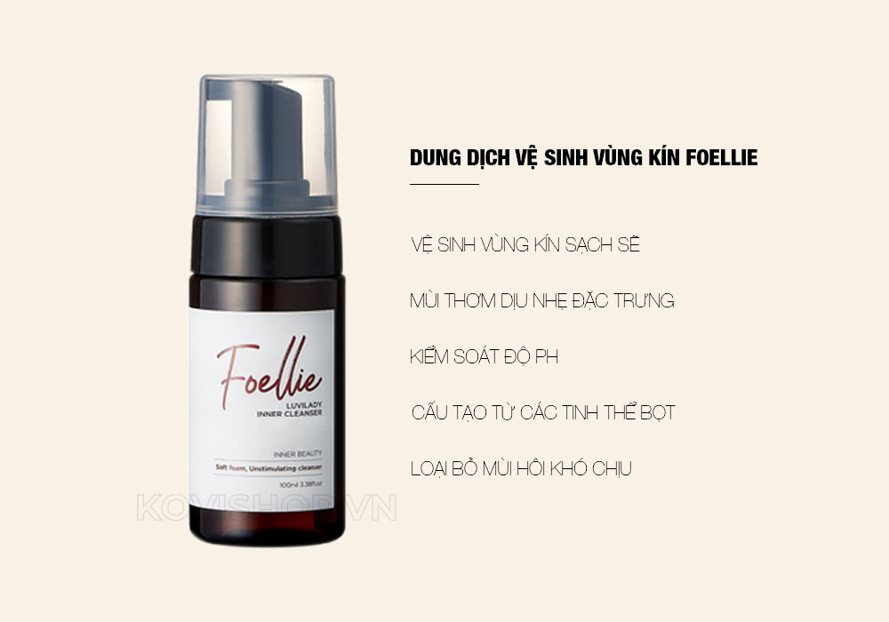 - Ngoài ra, sử dụng dung dịch vệ sinh Foellie Luvilady Inner Cleanser còn giúp bạn khỏe mạnh, tự tin hơn, ngăn ngừa các bệnh viêm nhiễm phụ khoa.