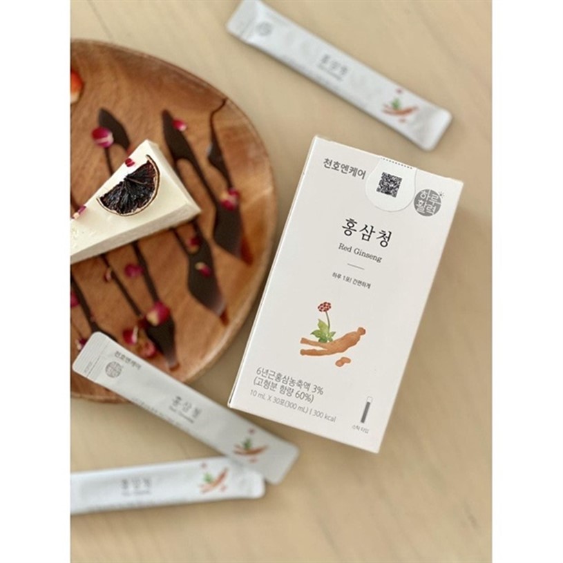 Sản phẩm Hồng sâm nguyên chất Chunho Ncare được đóng gói riêng từng gói nhỏ với dung tích 10ml/gói, nhỏ gọn và tiện lợi để sử dụng và mang đi ra ngoài
