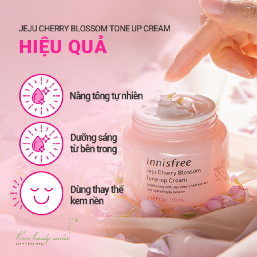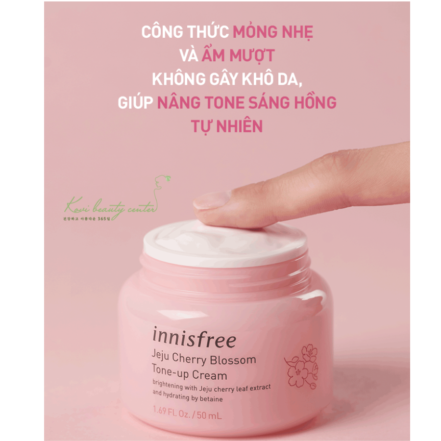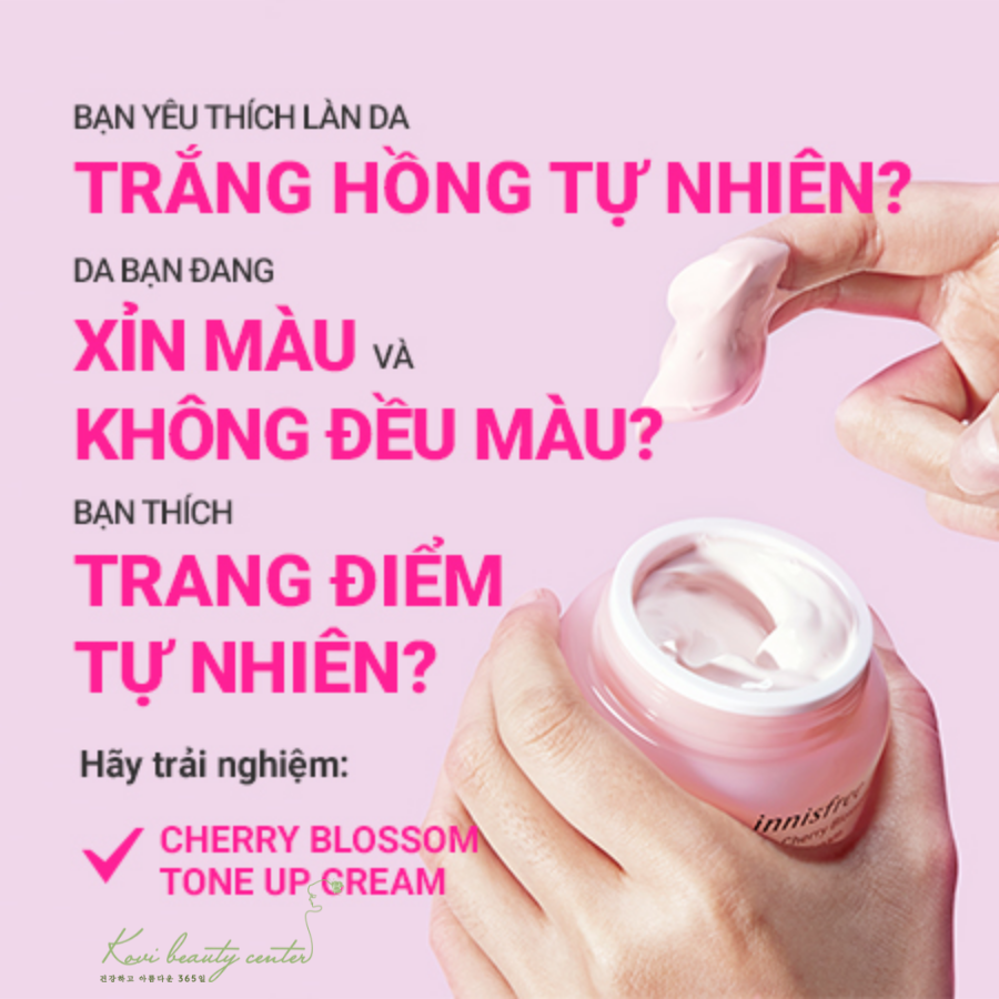 Đặc biệt đối với những ai có làn da khá nhạy cảm, da mụn…vẫn mong muốn được trang điểm để da được trắng hồng nhưng lại khá ngại khi dùng mỹ phẩm trang điểm thì Innisfree Jeju Cherry Blossom Tone Up Cream sẽ là 1 gợi ý lý tưởng cho bạn. Sản phẩm vừa là kem dưỡng da vừa hỗ trợ làm sáng hồng da tức thời cho bạn.