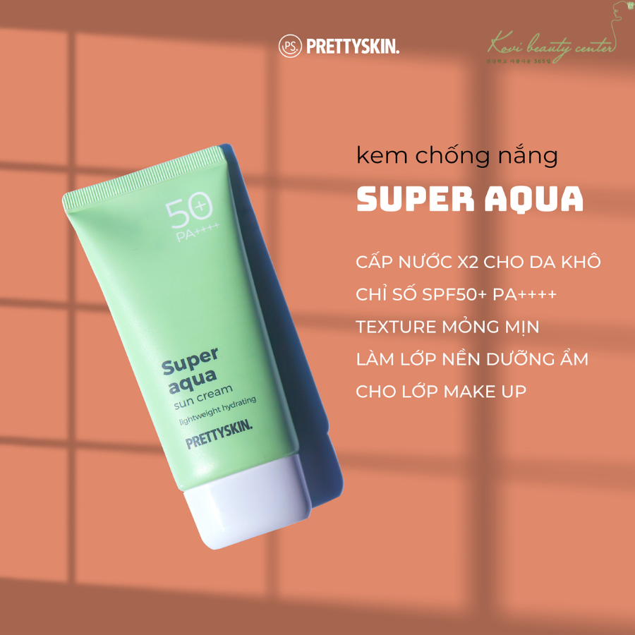 • Kem chống nắng siêu cấp nước Super Aqua Prettyskin bổ sung nước và khoáng chất cho nàng da khô. Cấp nước x2 cho làn da khô nhanh chóng lấy lại sức sống và căng bóng