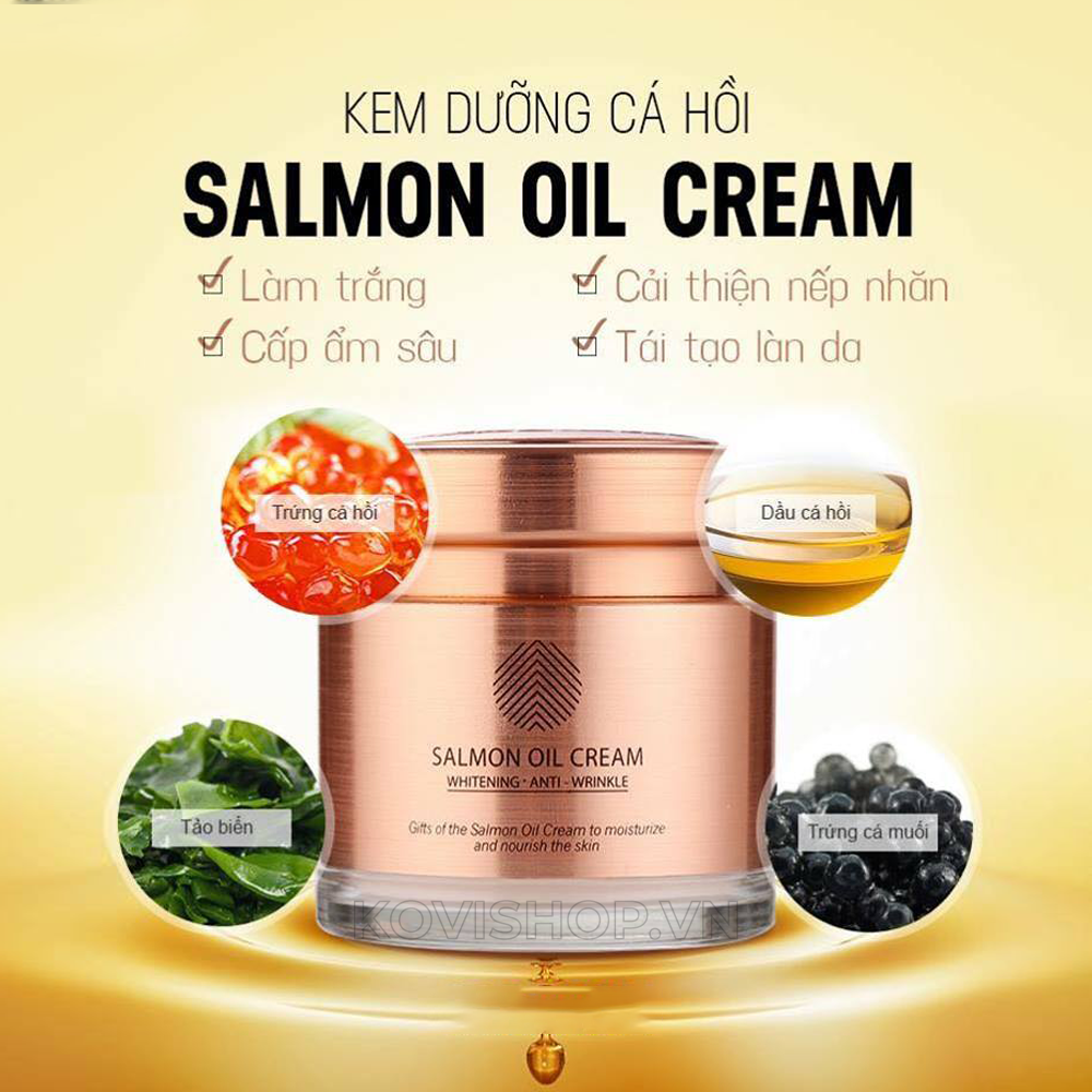 -Đây là sản phẩm có chứa thành phần đặc biệt cũng như quan trọng là tinh dầu cá hồi, trứng cá hồi, tảo biển và rau má