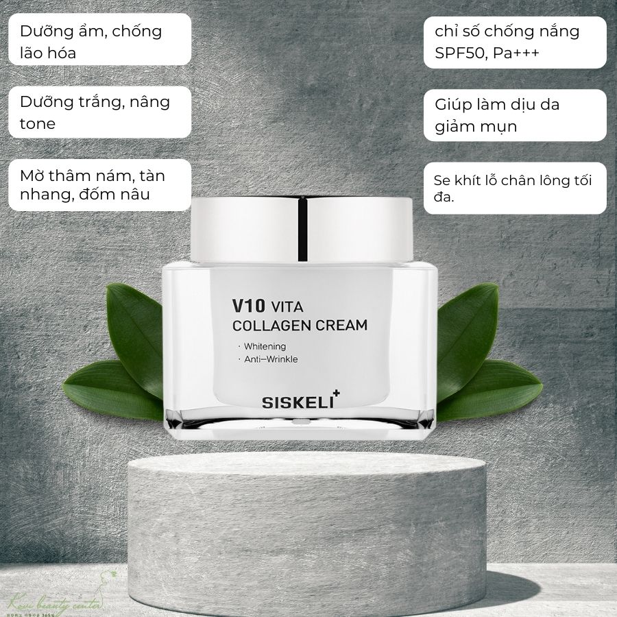 - V10 Siskeli là dòng kem dưỡng trắng mờ thâm nám, tàn nhang, đốm nâu, chống lão hóa bổ sung thêm các tinh thể vitamin giúp da săn chắc, khỏe mạnh được đông đảo chị em phụ nữ Hàn Quốc lựa chọn