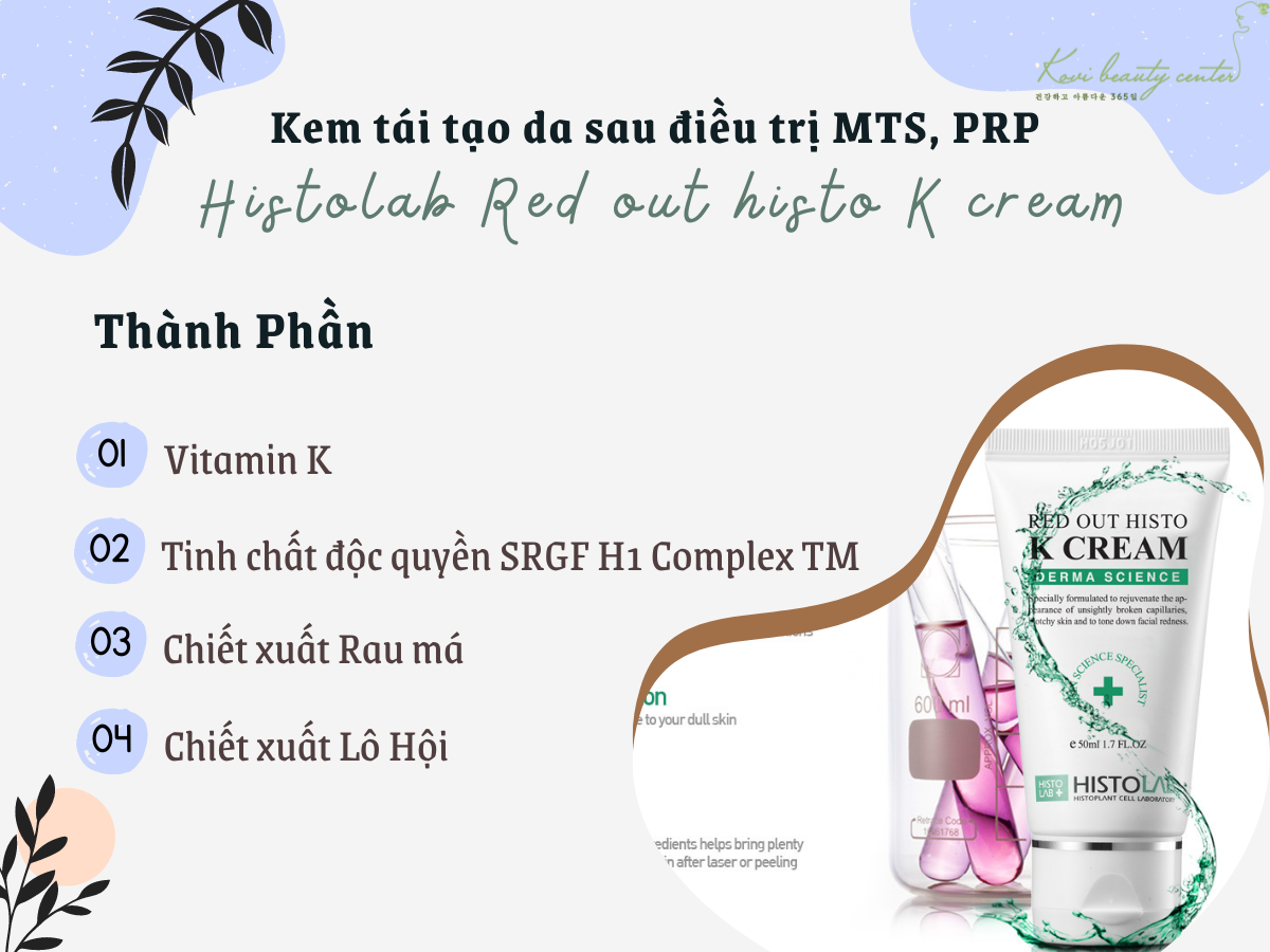 - Lấy một lượng kem vừa đủ Histo K Cream thoa vào vùng da vừa trị liệu bằng MTS hoặc PRP. Sử dụng 2lần/ngày liên tục trong vòng 1 tuần sau điều trị để đem lại hiệu quả tốt nhất.