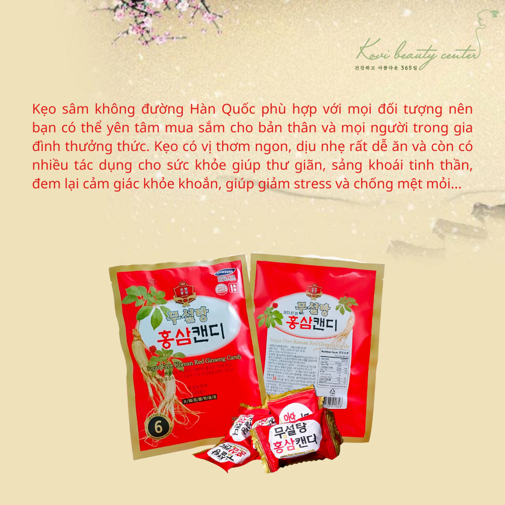 - Hàm lượng đường trong kẹo sâm không cao, lại có chất xylitol chiếm tới hơn 50% chất làm ngọt, vì vậy mà bạn có ăn nhiều kẹo sâm một chút cũng không gây sâu răng như các loại kẹo thông thường khác.