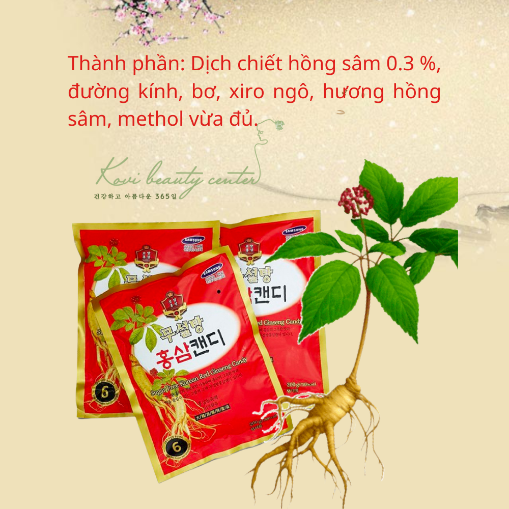 Kẹo hồng sâm không đường đỏ Hàn Quốc chiết xuất từ hồng sâm 6 năm tuổi và mật ngô