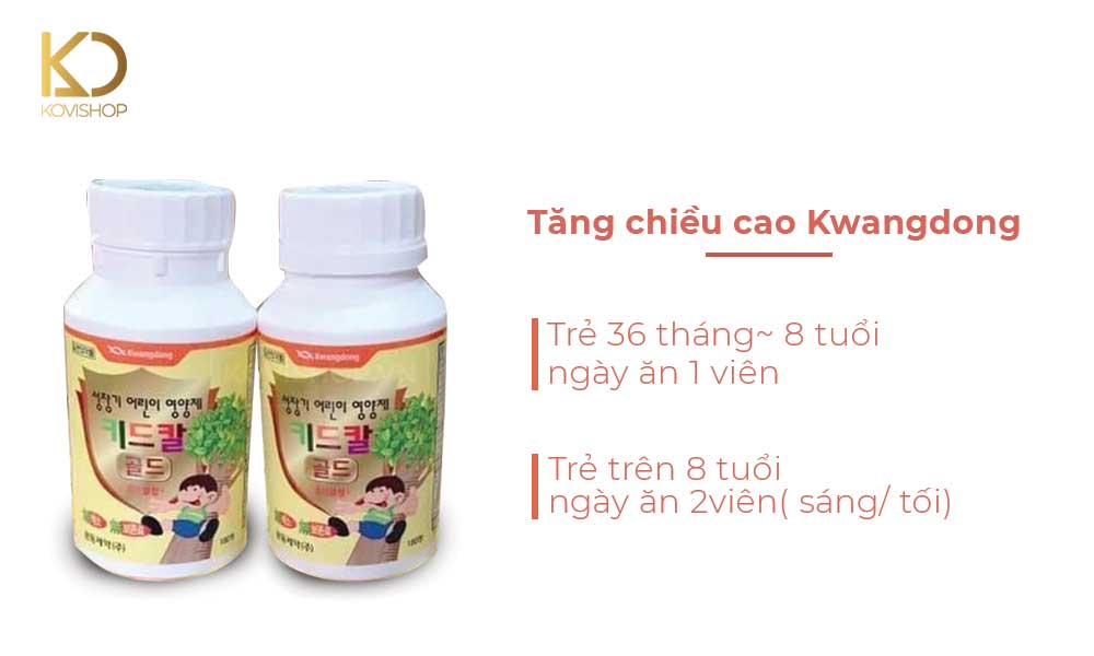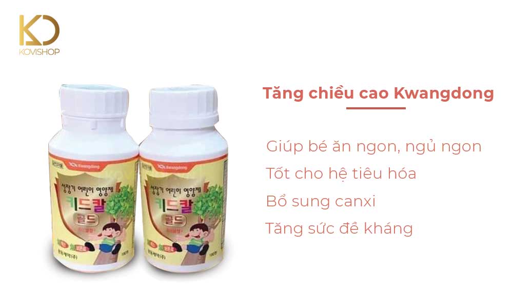 Viên ngậm Kwangdong cung cấp cho cơ thể bé đa dạng các vitamin và khoáng chất quan trọng cho sự phát triển thể chất và trí não tốt. Hơn nữa bạn cũng sẽ không còn phải lo lắng chuyện con cái ốm vặt và lười ăn sau khi cho bé dùng viên uống tăng trưởng chiều cao Kwangdong (키드칼 골드). Đây có thể được xem là bí quyết nuôi con khỏe mạnh và cao lớn của các bà mẹ Hàn Quốc.