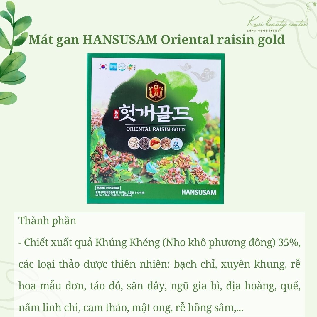 - Chiết xuất quả Khúng Khéng (Nho khô phương đông) 35%, các loại thảo dược thiên nhiên: bạch chỉ, xuyên khung, rễ hoa mẫu đơn, táo đỏ, sắn dây, ngũ gia bì, địa hoàng, quế, nấm linh chi, cam thảo, mật ong, rễ hồng sâm,...