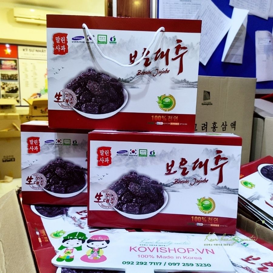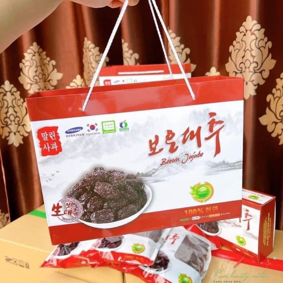 Thương hiệu táo đen sấy khô Boeun JujuBe loại hộp 1kg, sản phẩm có kèm túi xách rất đẹp, thể hiện sự sang trọng sẽ là món quà ý nghĩa để bạn tặng người thân.