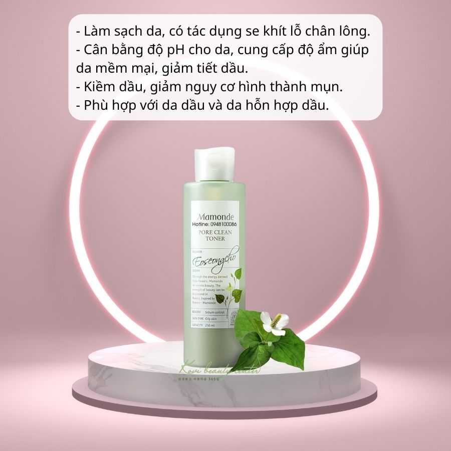 - Nước hoa hồng Mamonde Pore Clean Toner chiết xuất từ lá diếp cá hỗ trợ điều tiết tuyến bã nhờn. Sản phẩm giúp kháng viêm, giảm thâm đặc biệt cho những người có tình trạng lỗ chân lông to và da đổ nhiều dầu giúp se khít lỗ chân lông. Các tinh chất từ lá diếp cá như một bài thuốc hiệu quả để chữa rất nhiều bệnh từ xa xưa. Đặc biệt diếp cá còn biết đến nhờ tính mát, giúp thanh lọc cơ thể bởi vậy sản phẩm có tác dụng làm dịu da ở tình trạng da bị sưng tấy.