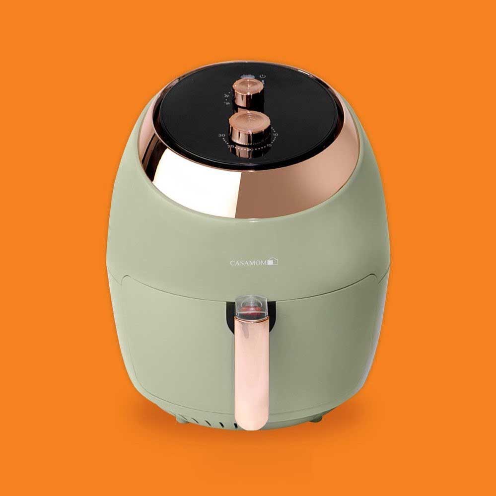 - Nồi chiên không dầu Casamom được trang bị công nghệ điều khiển cơ bền bỉ, dễ dàng thao tác sử dụng. Vỏ ngoài được làm từ chất liệu nhựa bền đẹp, chịu nhiệt tốt và dễ dàng lau chùi khi bị bám bẩn.