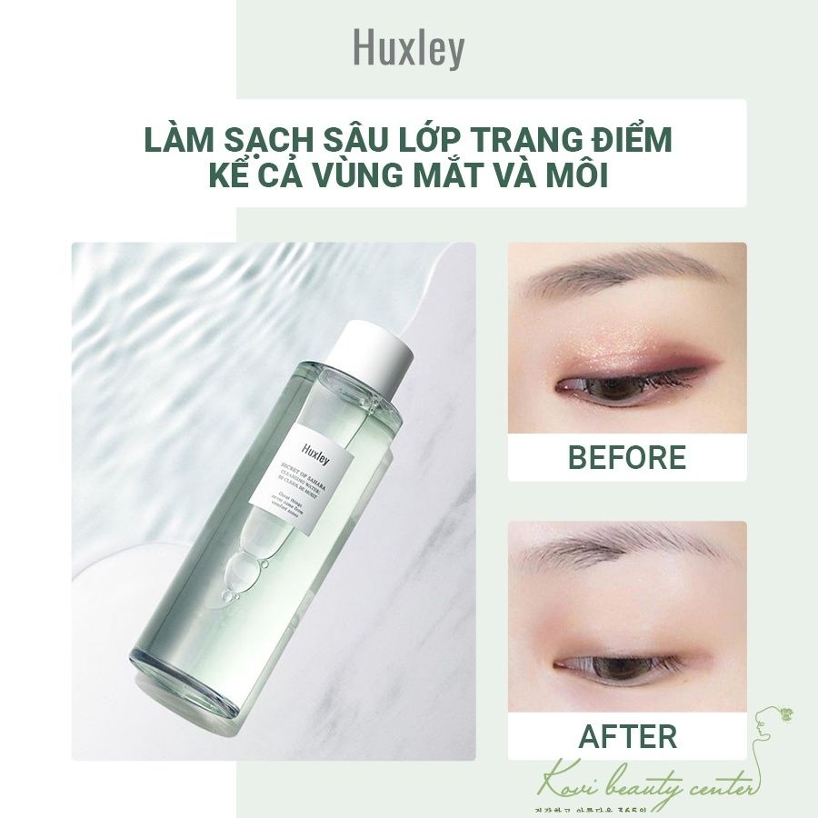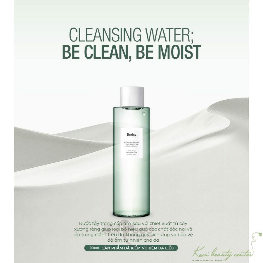 - Nước Tẩy Trang Chiết Xuất Xương Rồng Huxley Cleansing Water ; Be Clean, Be Moist dễ dàng lấy đi lớp trang điểm và bụi bẩn sâu từ bên trong lỗ chân lông, mang lại làn da sáng sạch.