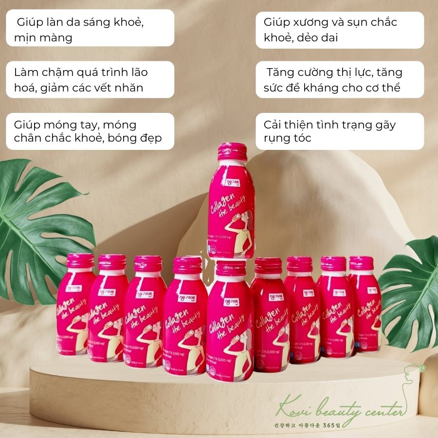 - Collagen là loại protein tạo nên các mô liên kết, chiếm khoảng 25% tổng lượng protein trong cơ thể người. Collagen không chỉ có tác dụng giúp da căng bóng, đàn hồi mà còn giúp hỗ trợ tóc, móng, xương, dây chằng, cơ bắp, sụn và các cơ quan nội tạng khỏe mạnh.