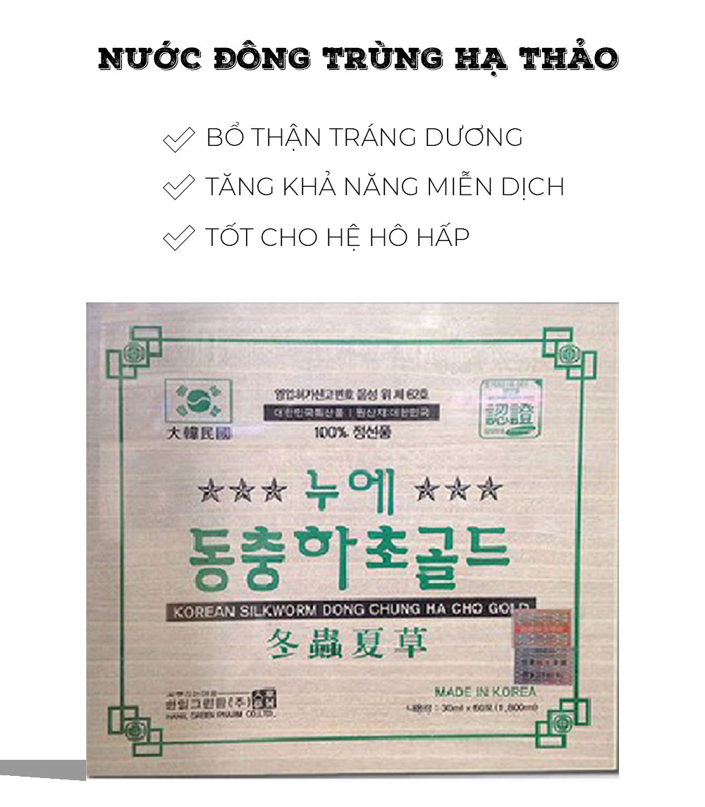 - Giúp bồi bổ cơ thể, giảm sự mệt mỏi, tăng sức đề kháng cơ thể, tăng cường sinh lực, tăng sự tập trung. Hỗ trợ hạn chế lão hoá, tăng sự tỉnh táo