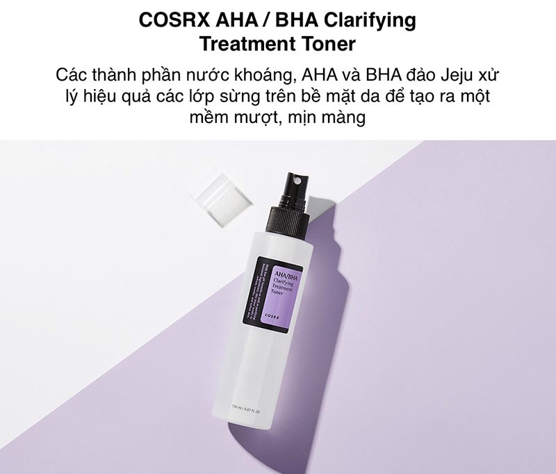 - Nước hoa hồng Cosrx AHA/BHA là chất “xúc tác” giúp các bước skincare hoạt động hiệu quả hơn cũng như giúp các dưỡng chất thẩm thấu tốt hơn.