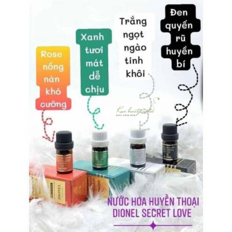 Để tạo sự đa dạng về mùi hương Dionel Secret Love có 4 phiên bản khác nhau với 4 mùi hương khác nhau là Secret Love Black Edition, Secret Love White Edition, Secret Love Clean Cotton và Secret Love Romantic Rose