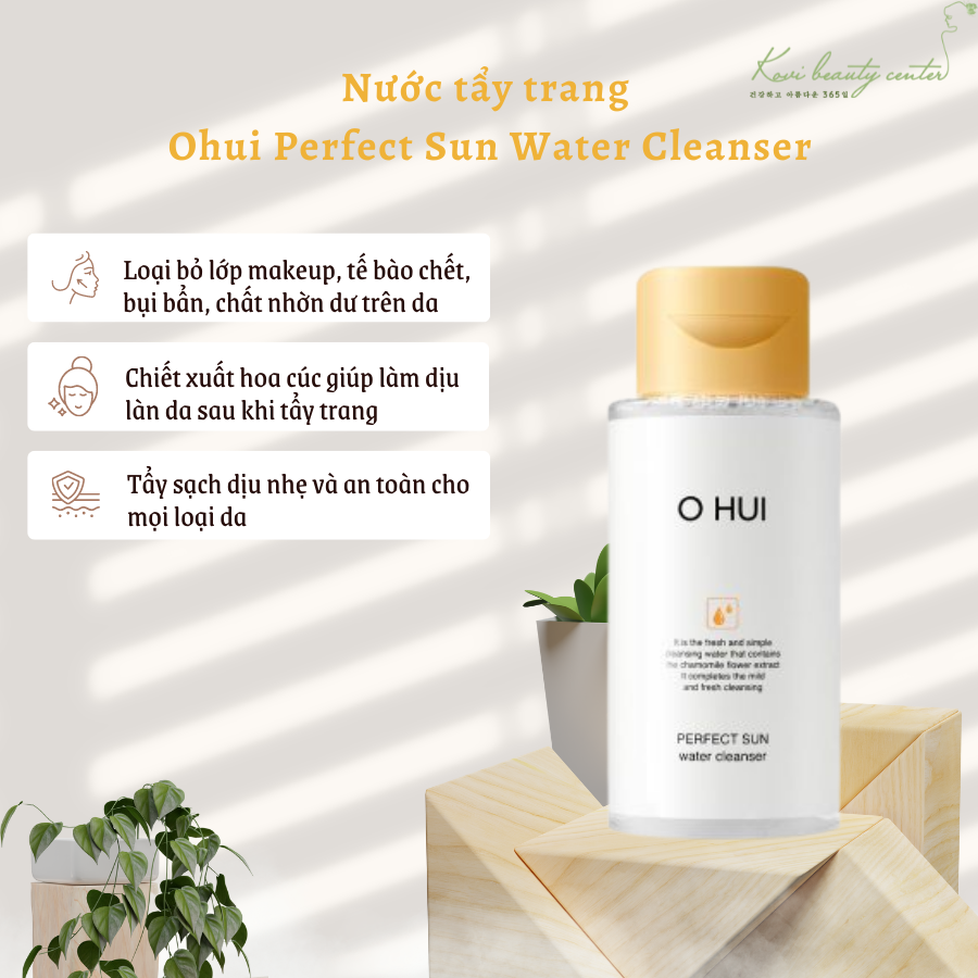 - Thường xuyên sử dụng Nước tẩy trang Ohui Perfect Sun Water Cleanser để có thể chăm sóc tối ưu làn da trang điểm nhiều hay làm việc quá lâu trong môi trường bụi bẩn, nắng cháy. Trả lại nét hồng hào, mịn màng của làn da nhạy cảm, sạch sẽ thoáng mát. Giúp các dưỡng chất từ các sản phẩm dưỡng da thấm sau và nhanh hơn.