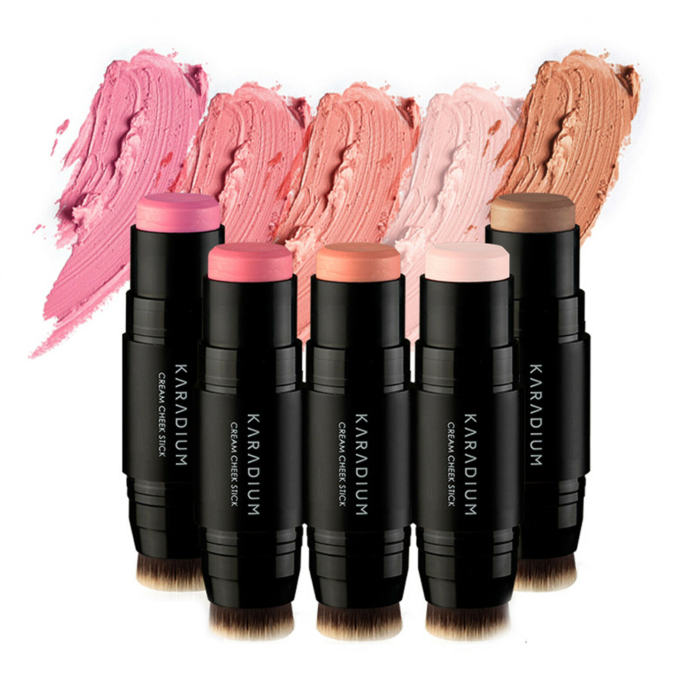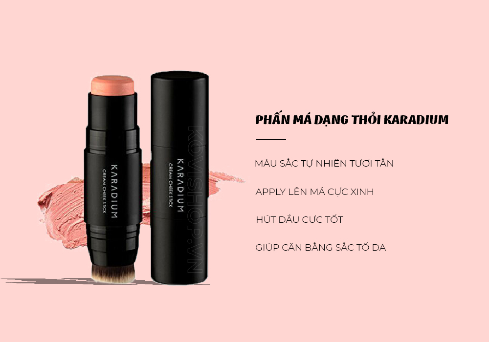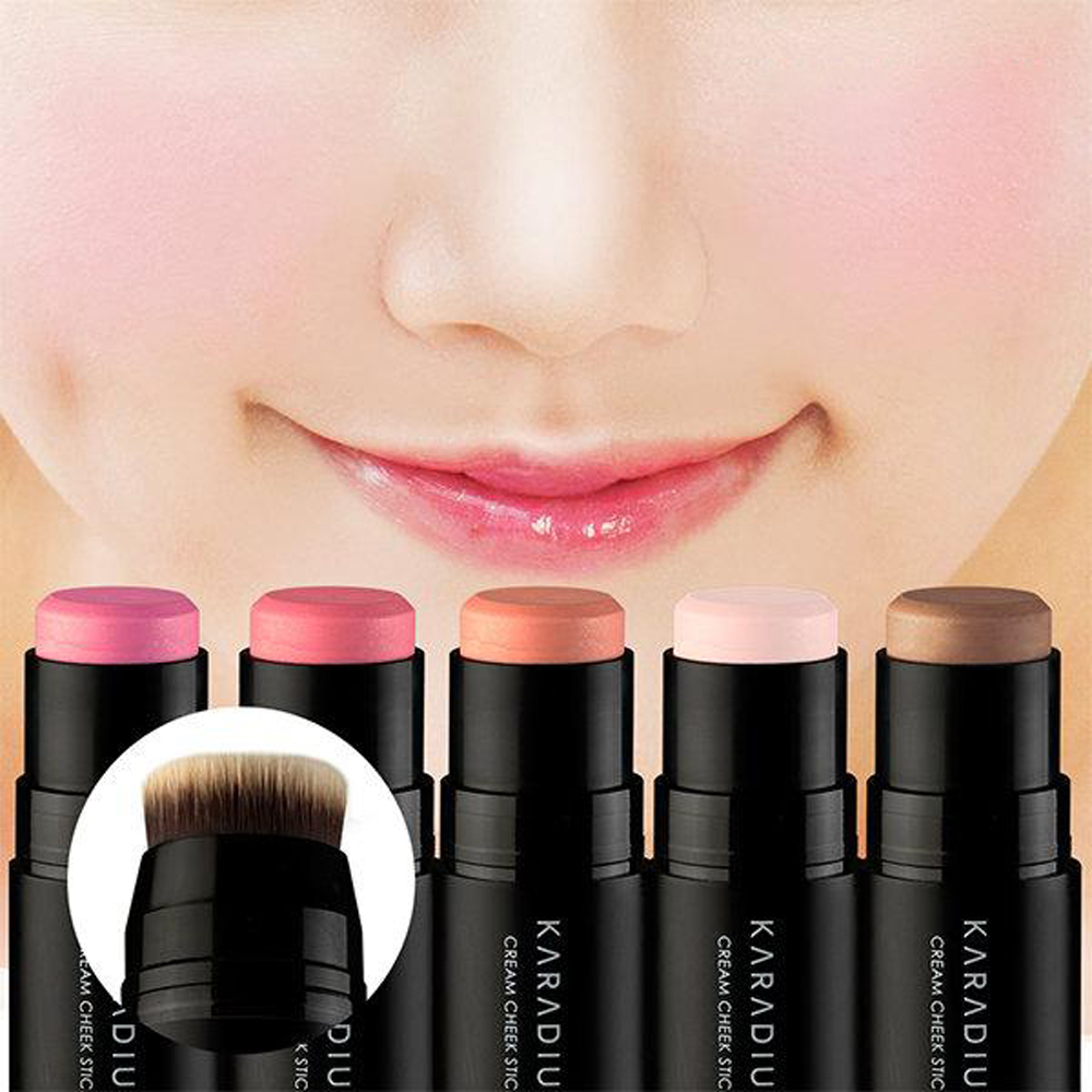 Bước 2: Sau khi đã xá định được gò má thì tiến hành mở nắp và chấm phấn má Karadium Cream Cheek Stick lên các điểm.