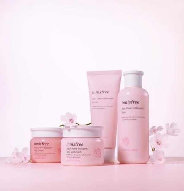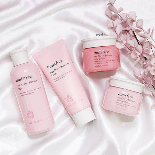 - Nước hoa hồng Innisfree Cherry Blossom Skin 50ml: giúp cân bằng độ ph cho da, cung cấp độ ẩm nhanh chóng giúp da mịn màng và mềm mại hơn. Ngoài ra còn có khả năng giúp da hấp thụ tốt hơn các dưỡng chất từ các bước tiếp theo.