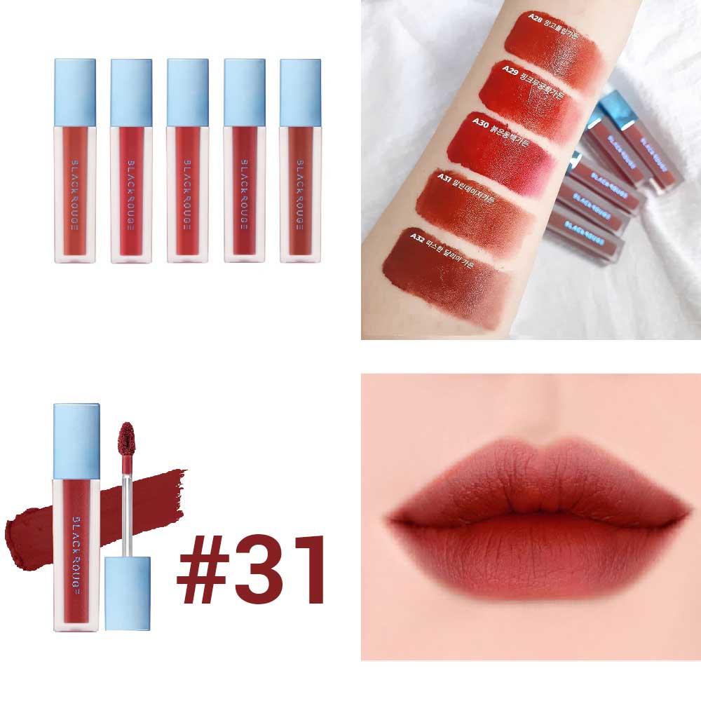 - Kết thúc bảng màu của Black Rouge Version 6 là một tông màu cũng ấn tượng không kém. Đó là màu nâu đỏ đất, tông màu trầm đậm nhất và hơi ngả lạnh. Màu son này có thể tôn lên vẻ xinh xắn, kiêu kỳ và nét đẹp đẹp hiện đại của bạn gái. Tuy vậy khi thoa son full môi nên lưu ý phải make-up đi kèm để không làm làn da bị tái và khuôn mặt trông hơi già hơn tuổi.