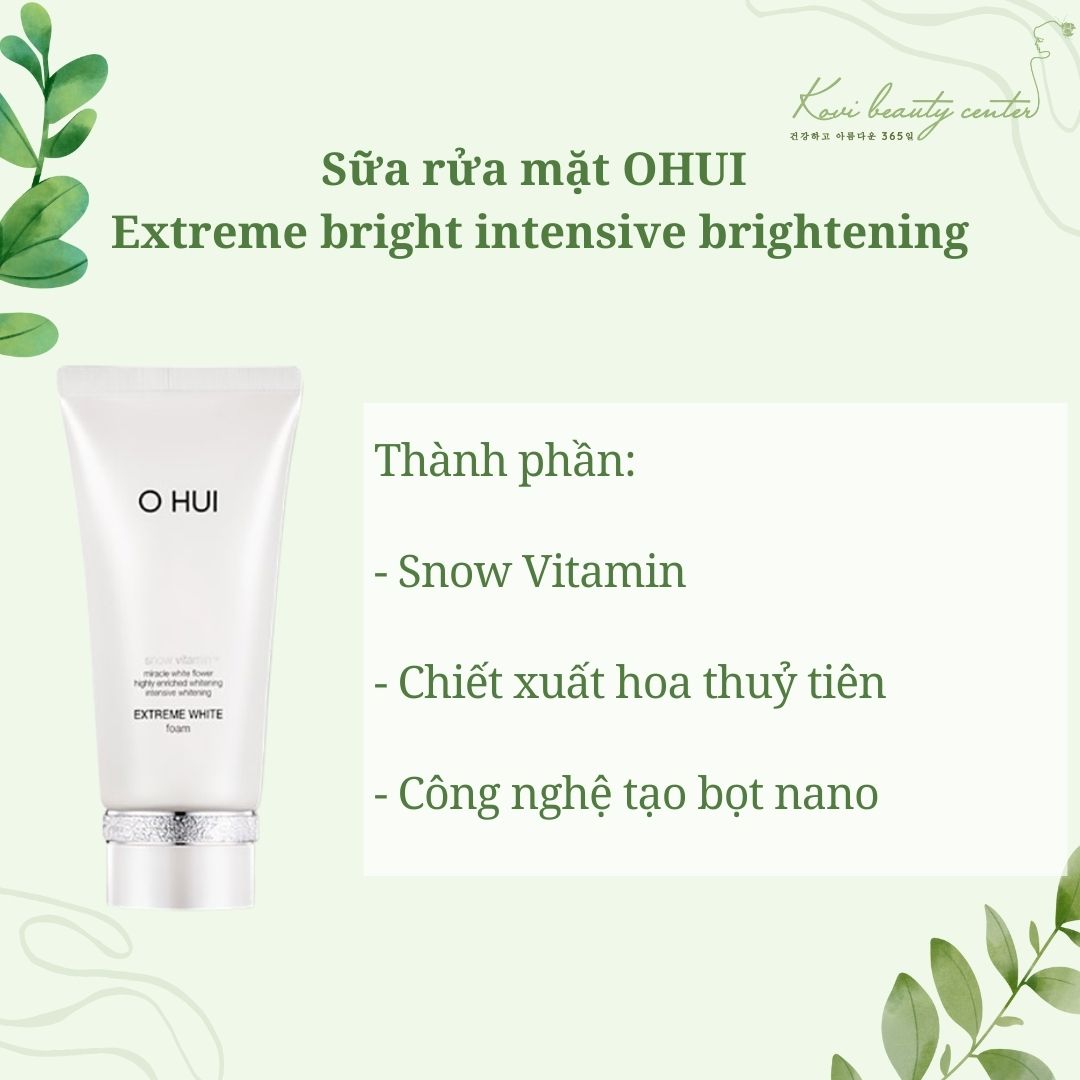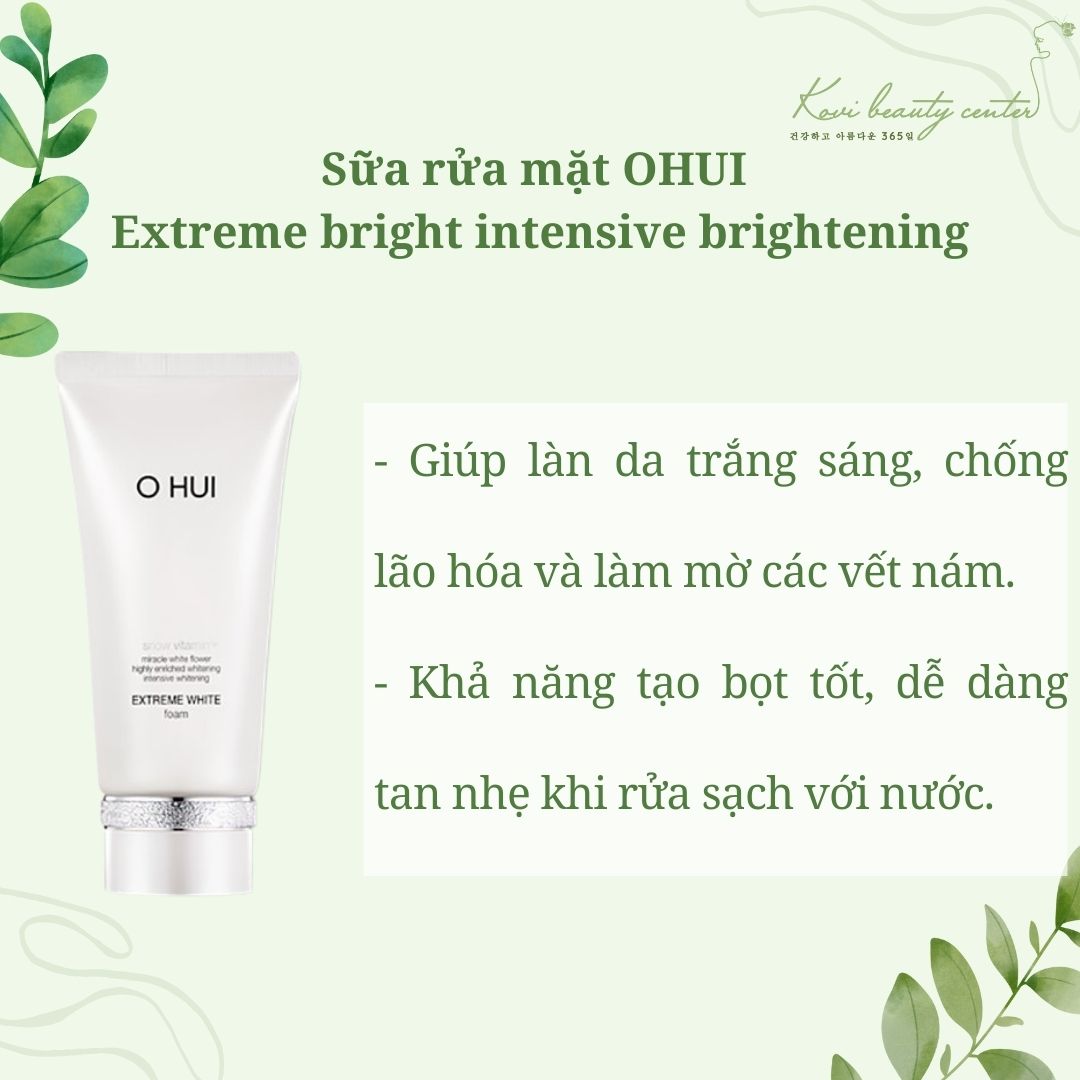 - Sữa rửa mặt dưỡng trắng OHUI Extreme Bright Cleansing Foam:Sữa rửa mặt với các hạt Vitamin giúp làm sạch sâu và chăm sốc tới từng tế bào.