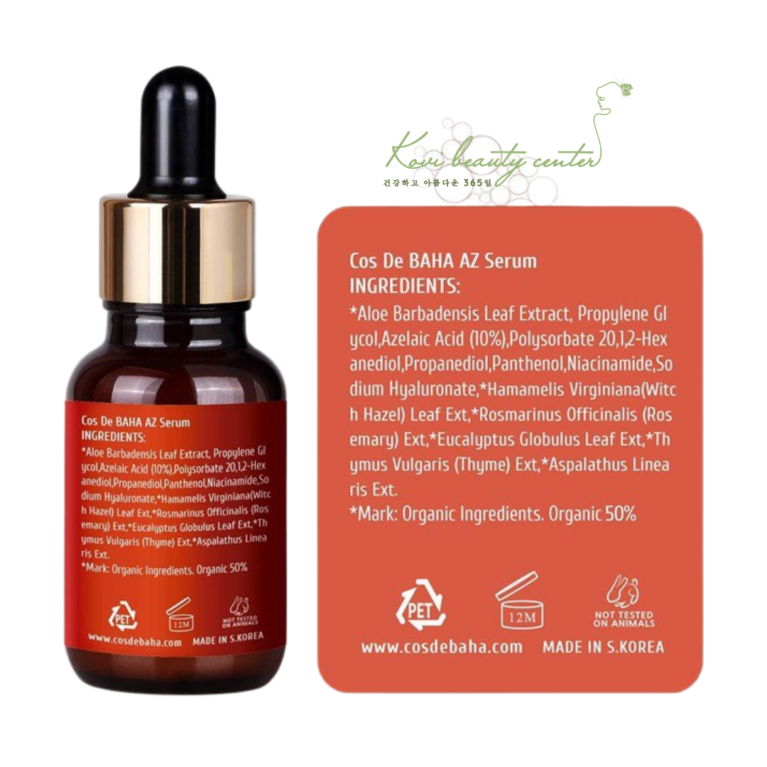 Aloe Barbadensis Leaf Extract, Propylene Glycol,Azelaic Acid (10%), Polysorbate20,1,2-Hexanediol, Propanediol, Panthenol, Niacinamide, Sodium Hyaluronate,*Hamamelis Virginiana(Witch Hazel) Leaf Ext, *Rosmarinus Officinalis (Rosemary) Ext,*Eucalyptus Globulus Leaf Ext,*Thymus Vulgaris (Thyme) Ext,*Aspalathus Linearis Ext.