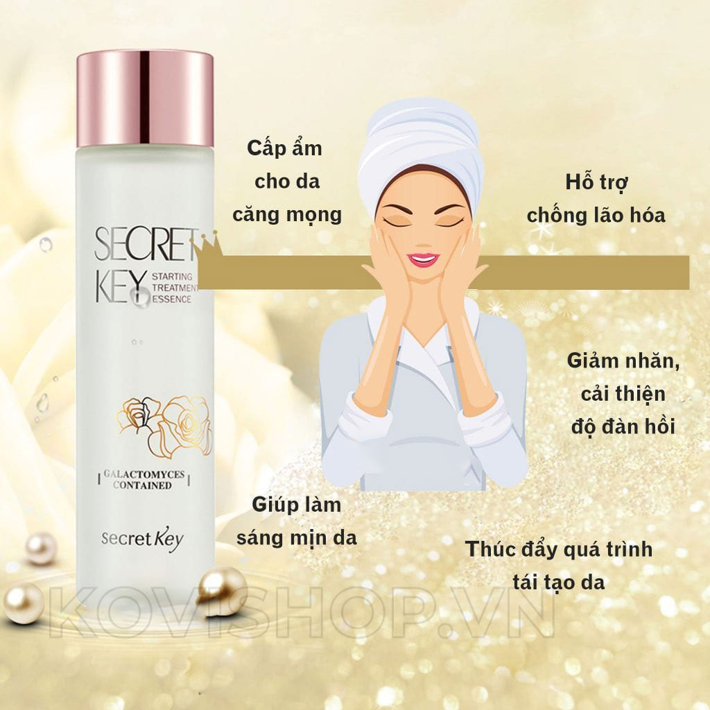 – Chiết xuất rau sam rất giàu vitamin A cần thiết cho việc duy trì độ nhờn của da. Tinh chất dưỡng Secretkey Starting Treatment Essence phù hợp với tất cả các loại da, kể cả da nhạy cảm nhất. Đây là sản phẩm rất cần thiết cho những làn da đang có vấn đề về mụn, da dị ứng, bị hư tổn, thiếu sức sống hay nám, sạm, tàn nhang.