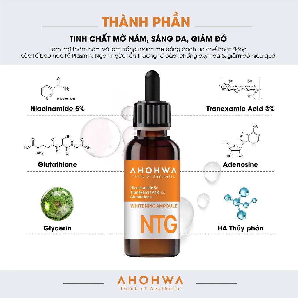 - Sau bước bôi tinh chất NTG có thể apply thêm các lớp tinh chất khác + kem dưỡng Ahohaw để tăng hiệu quả đtri.