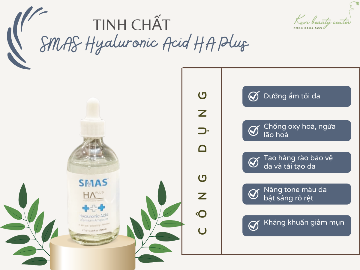 - Giúp làn da trở nên mịn màng, mềm mại và căng bóng nhờ các phân tử HA tinh khiết có trong sản phẩm giúp da được bổ sung độ ẩm một cách tối đa và hoàn hảo nhất.