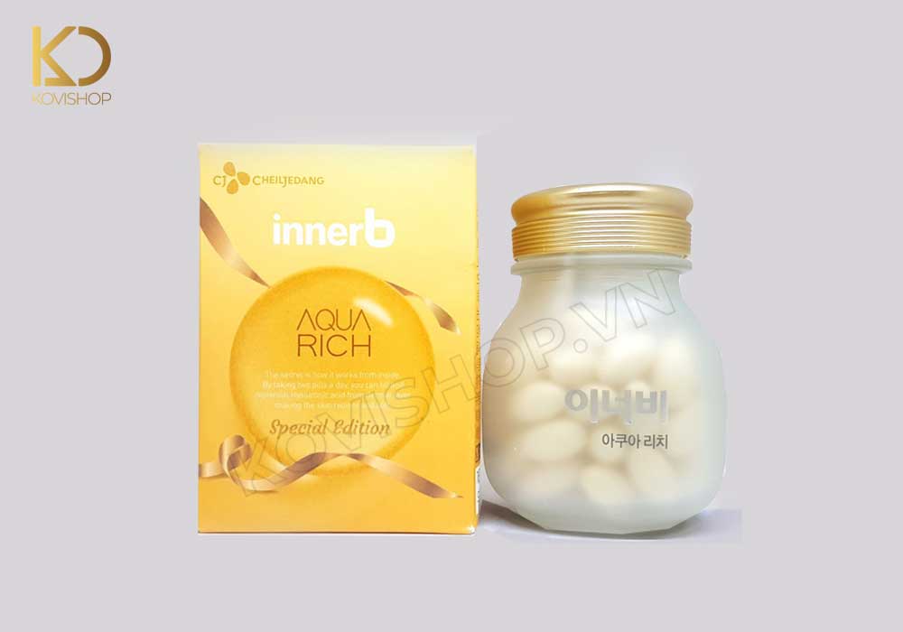 - Viên uống cấp nước và Collagen Innerb Aqua Rich là giải pháp tối ưu cứu cánh cho làn da khô ráp, mệt mỏi, da bị nhăn nheo lão hóa. Sản phẩm bổ sung nước và collagen cho da căng mịn, đàn hồi, tươi trẻ, giảm hình thành nếp nhăn hiệu quả. Sản phẩm chất lượng đạt nhiều giải thưởng tại Hàn Quốc xứng đáng để chăm sóc cho làn da của bạn.