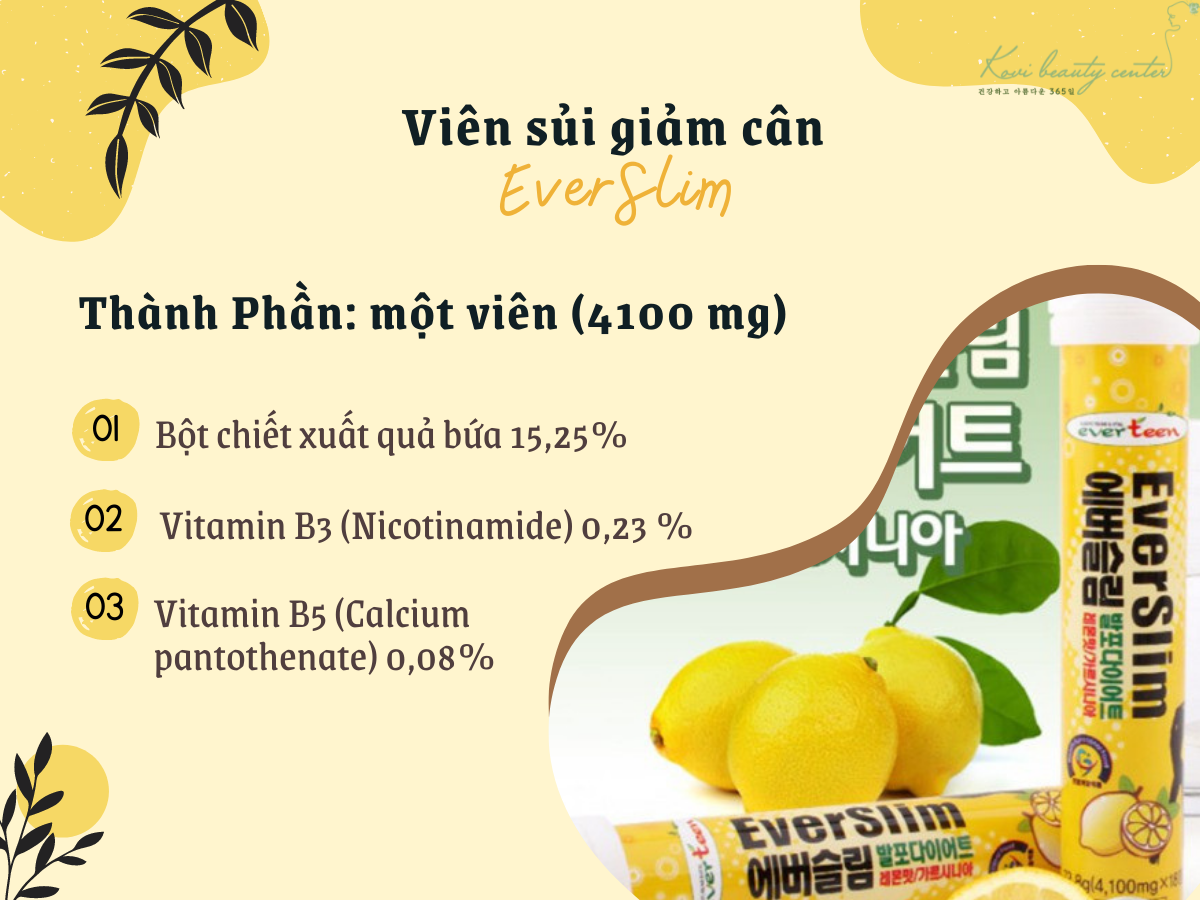 - Bột chiết xuất quả bứa [xuất xứ Ấn Độ, Tổng (-)-HCA 60%] 15,25%, Vitamin B3 (Nicotinamide) 0,23 %, Vitamin B5 (Calcium pantothenate) 0,08%.