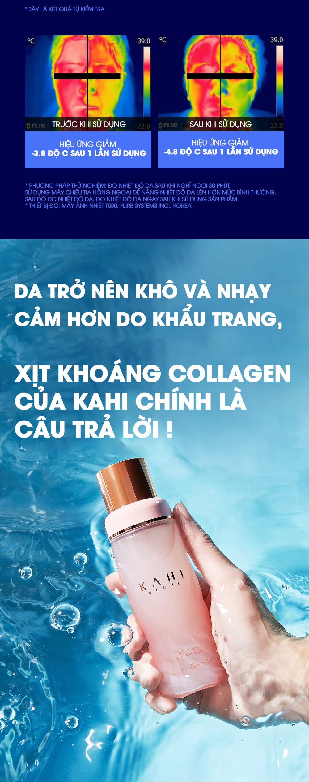 - Khả năng làm căng bề mặt da và thu nhỏ lỗ chân lông tức thì ngay sau khi sử dụng xịt khoáng Kahi.