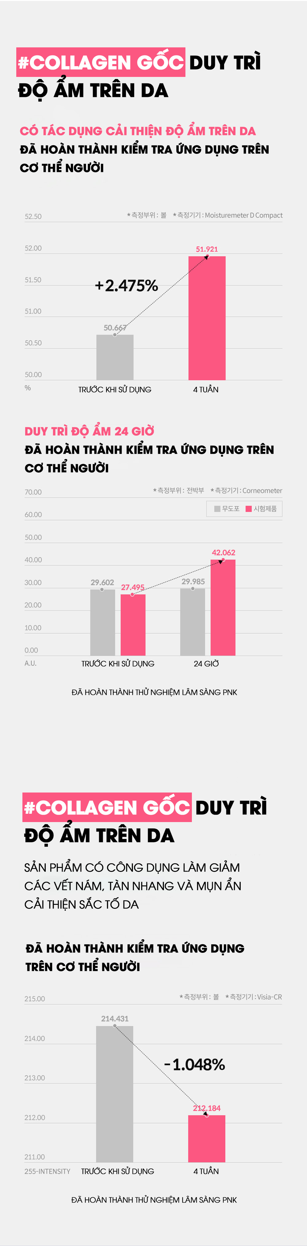 - Sản phẩm này có công thức của chiết xuất collagen cá hồi và chín loại axit hyaluronic giúp ngăn ngừa khả năng mất độ ẩm.